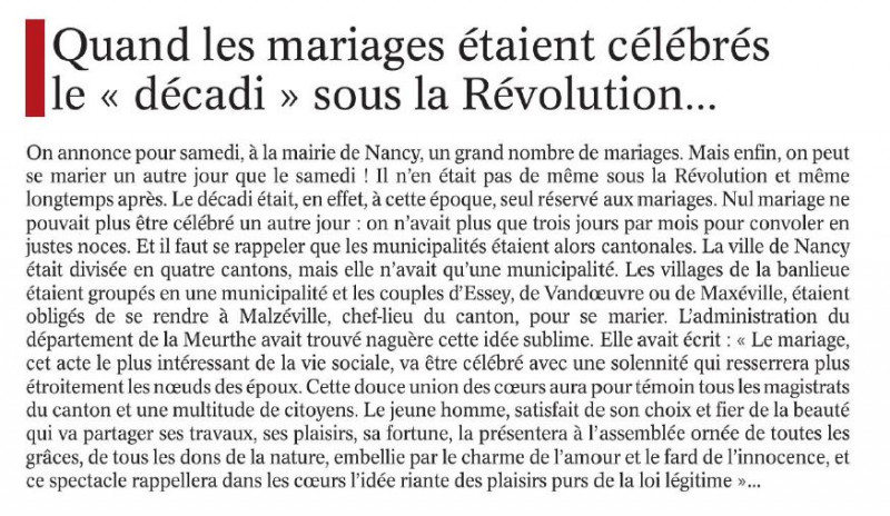 Quand les mariages étaient célébrés le "décadi" sous la Révolution ... Lire ici
