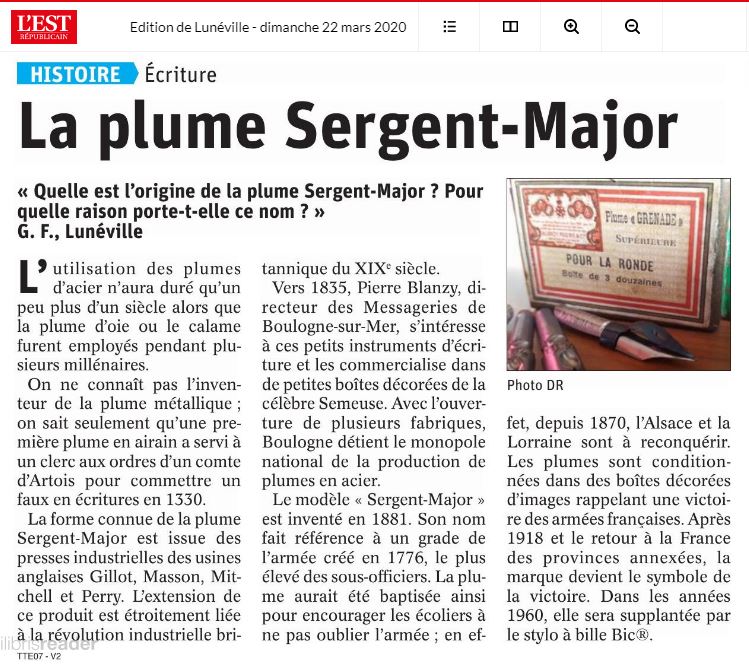 La plume Sergent-Major ... Lire ici