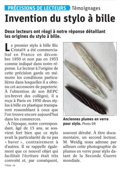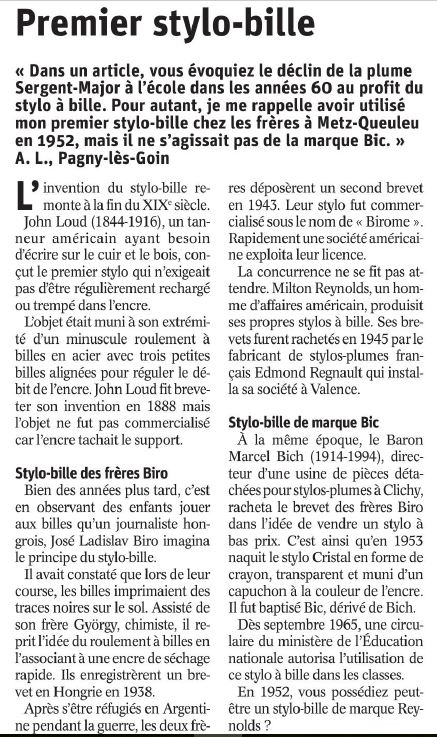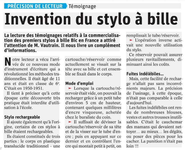 Premier stylo-bille ... Lire ici et correctif ici et complément ici