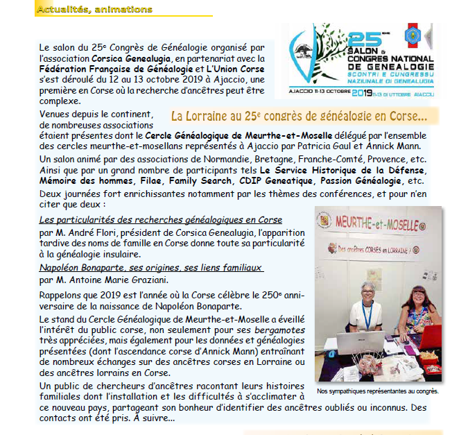 La Lorraine au 25ème Congrès de généalogie en Corse ... Lire ici