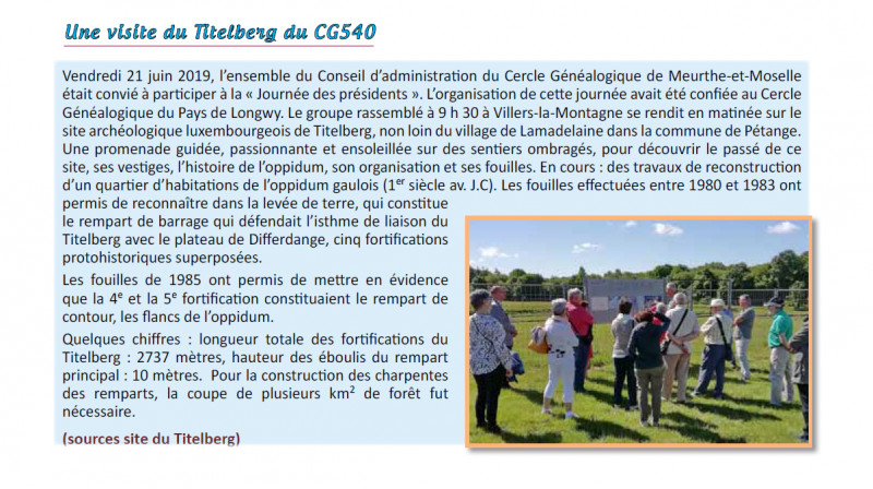 Une visite au Titelberg : l'ensemble du Conseil d'Administration CG540 ...Lire ici