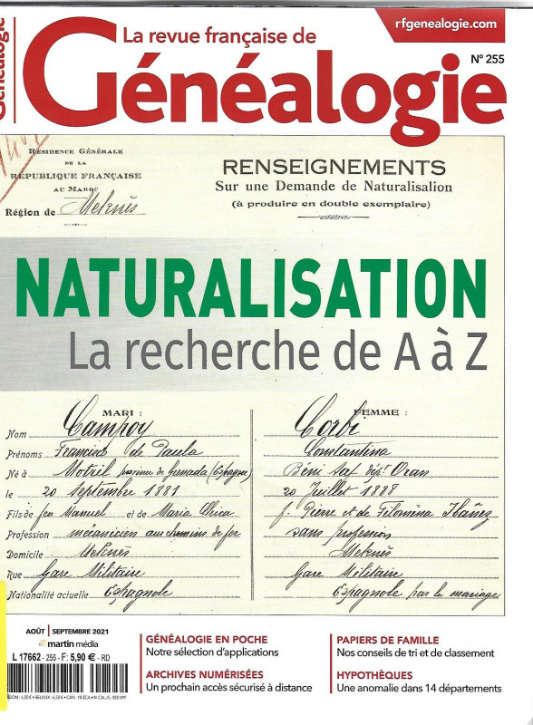 La Revue française de Généalogie : 1er numéro n°229 et dernier numéro n°255