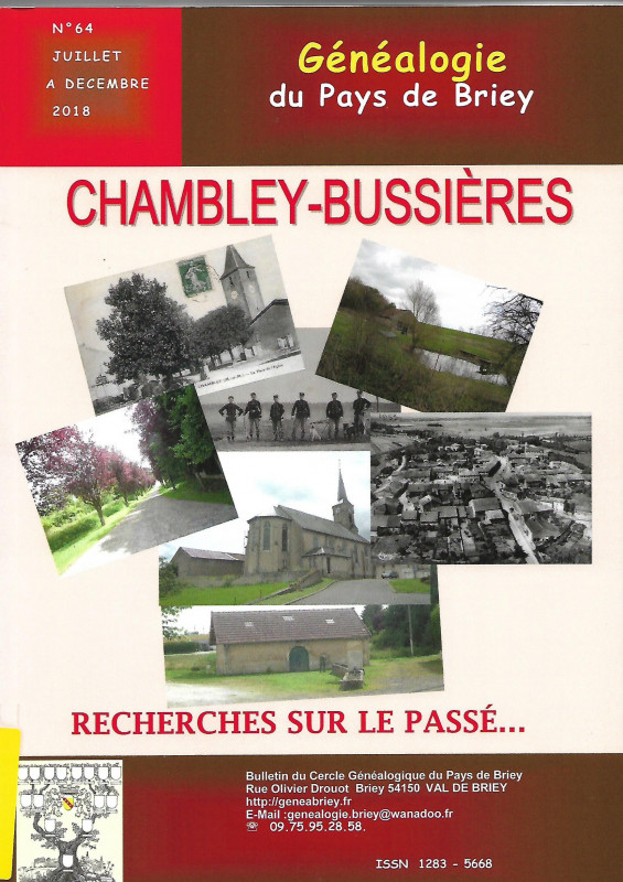 Généalogie du Pays de Briey : 1er numéro n°63 et dernier numéro n°64
