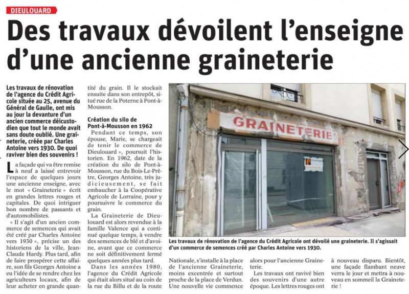 2021-03-27 : Des travaux dévoilent l’enseigne d’une ancienne graineterie ... Lien ici