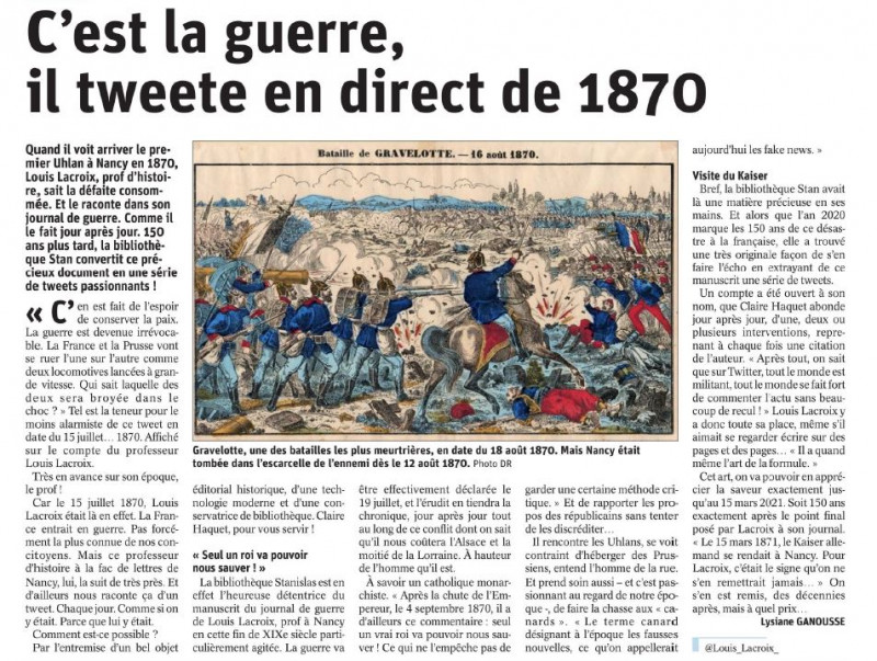 C'est la guerre, il tweete en direct de 1870 ... Lire ici